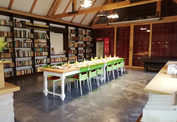 A kisebbik terem meeting teremként funkcionál, 55 nm-es nagysága ültetési formától függően kb. 25-30 fő befogadására alkalmas. Alapfelszereltségéhez tartozik a projektor vászonnal, 2 db flipchart, biliárd asztal és egy bárpult, télen padlófűtésének köszönhetően kellemesen meleg, nyáron pedig vastag falai kint tartják a hőséget. A nagyobbik terület pedig veterán autóknak, segwayeknek és kerékpároknak ad helyet, de szükség esetén nagyobb, akár 150-200 fős rendezvények, esküvők remek helyszíne is lehet.