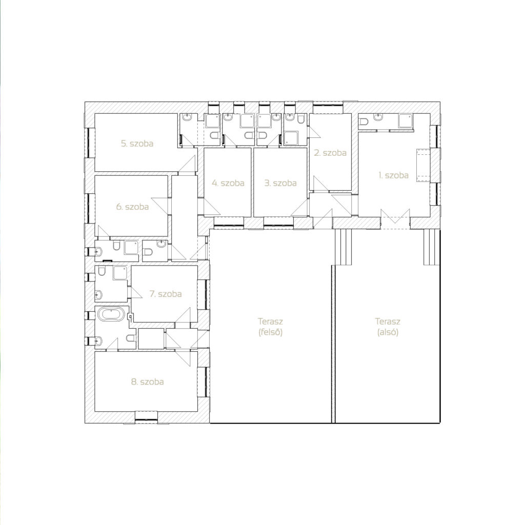 Számos szobából gyönyörű kilátás nyílik a kastélyparkra és magára a Festetics-Inkey kastélyra. A szobák berendezése ebben az épületben is tartogat meglepetéseket, hiszen hol máshol találkozhatnánk berendezési tárgyként kerítés mintázatú ágyvéggel, egy igazi kemencével vagy egy régies hangulatú fotólámpával? Hangulatos kikapcsolódást nyújt óriási teraszunk, ahol vendégeinknek grillezésre illetve bográcsozásra is lehetősége nyílik.